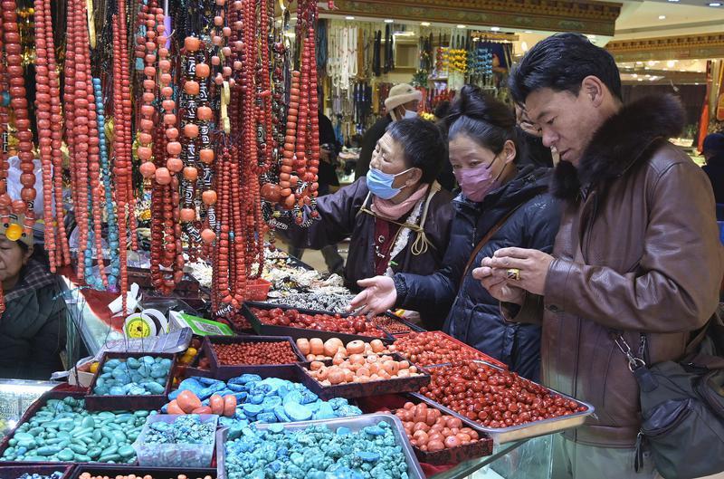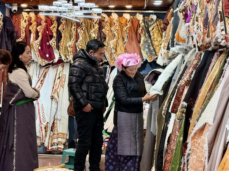 As the Tibetan New Year and the Lunar New Year approach, Tibetans are busy shopping for traditional New Year goods such as Tibetan clothing and jewelry, adding a festive atmosphere to the upcoming dual celebrations.
