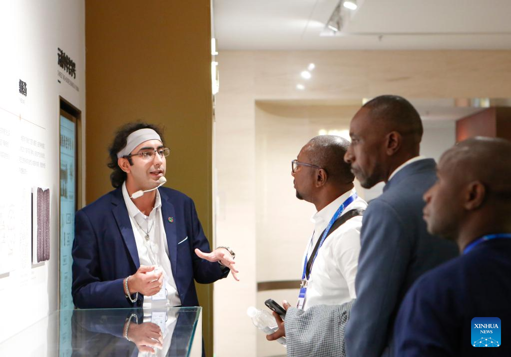 Guests to the 2025 Global South Media and Think Tank Forum visit Yunnan Baiyao Museum in Kunming, southwest China's Yunnan Province, Sept. 7, 2025. The 2025 Global South Media and Think Tank Forum opened Saturday in Kunming, capital of Yunnan. Guests toured different places in Yunnan on Sunday. (Xinhua/Chen Wei)