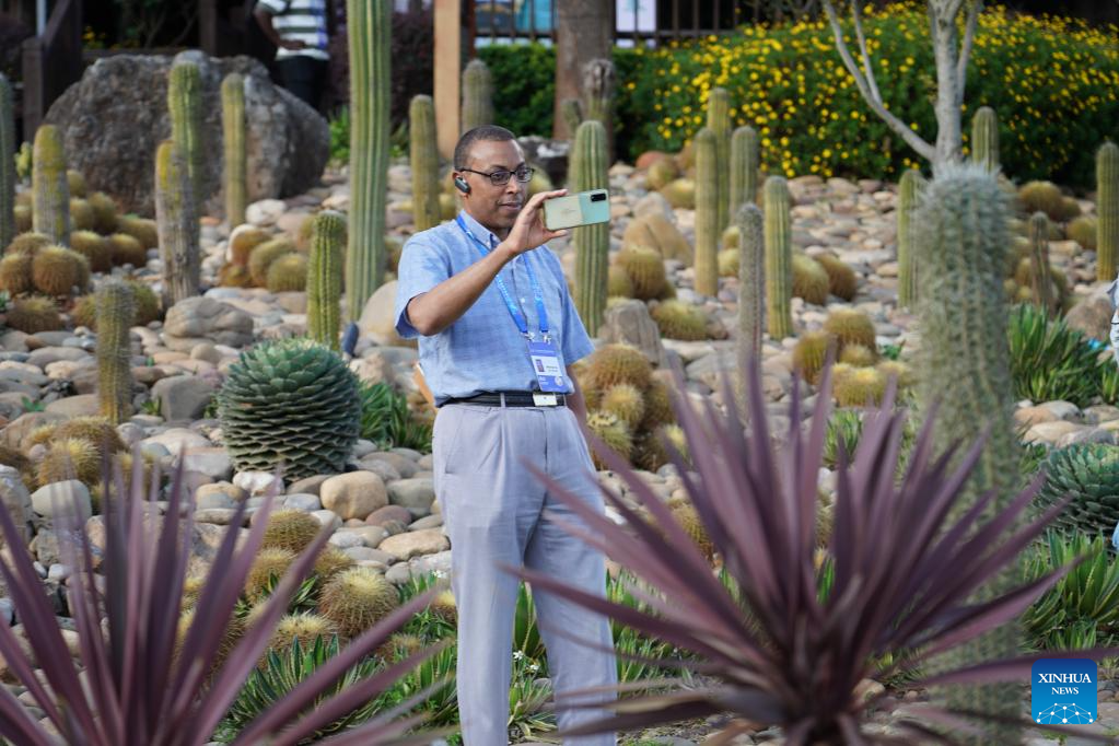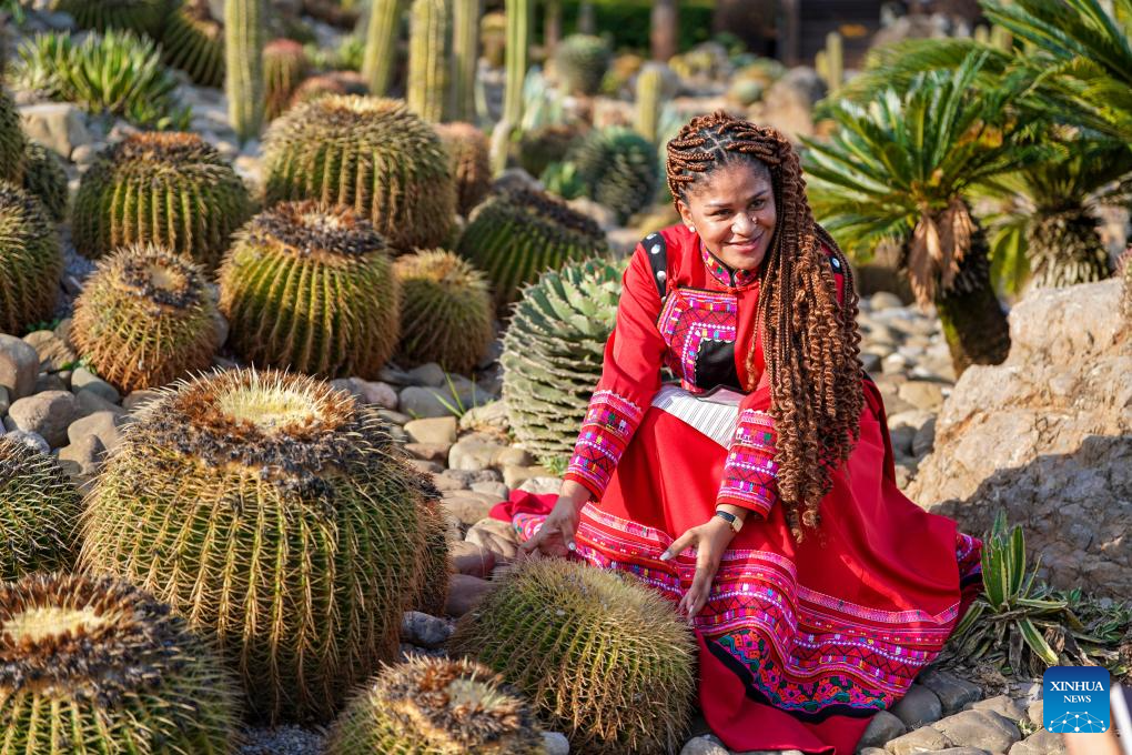 A guest to the 2025 Global South Media and Think Tank Forum visits Mountain Rocky Desertification Park in Mile City, southwest China's Yunnan Province, Sept. 7, 2025. The 2025 Global South Media and Think Tank Forum opened Saturday in Kunming, capital of Yunnan. Guests toured different places in Yunnan on Sunday. (Xinhua/Xin Mengchen)