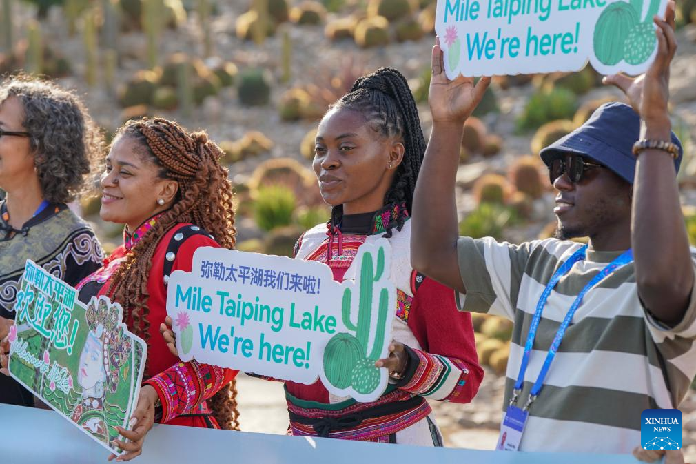 Guests to the 2025 Global South Media and Think Tank Forum visit Mountain Rocky Desertification Park in Mile City, southwest China's Yunnan Province, Sept. 7, 2025. The 2025 Global South Media and Think Tank Forum opened Saturday in Kunming, capital of Yunnan. Guests toured different places in Yunnan on Sunday. (Xinhua/Peng Yikai)