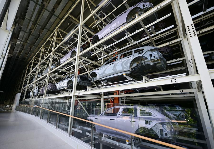 This photo shows the "Cube" Vertical Storage System at the NIO's Second Advanced Manufacturing Base in Hefei, east China's Anhui Province, July 1, 2025. (Xinhua/Zhou Mu)