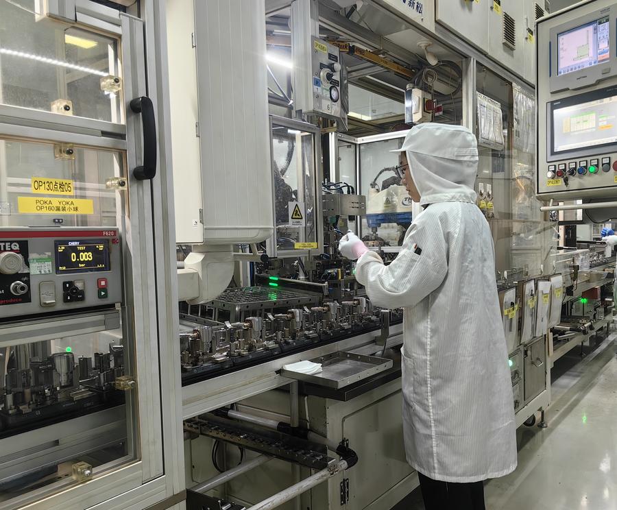 A staff member works at the production plant of the Marelli in Hefei, east China's Anhui Province, Sept. 5, 2025. (Xinhua/Wang Haiyue)