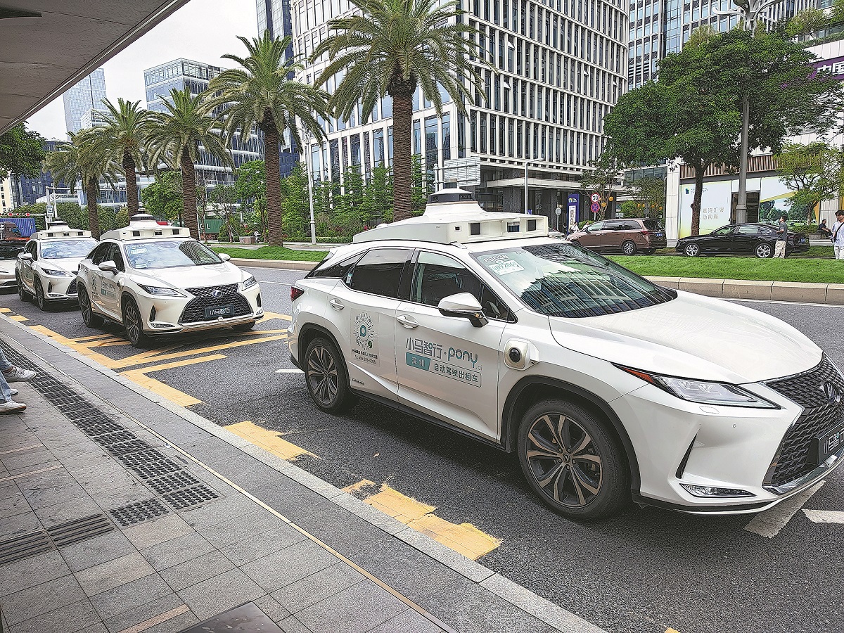 Robotaxis owned by autonomous driving company Pony.ai operate in Shenzhen, Guangdong province, in May. [Photo provided to China Daily]