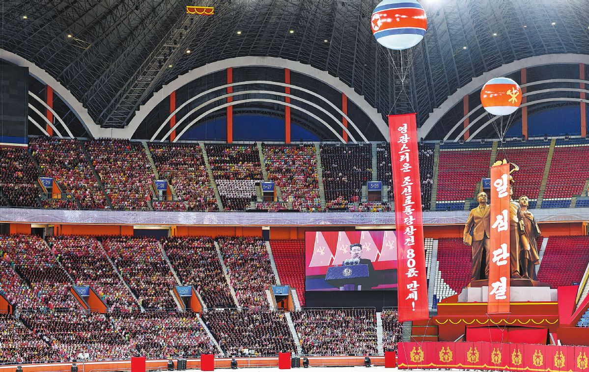 The 80th anniversary celebration of the Workers' Party of Korea is held in Pyongyang, Democratic People’s Republic of Korea, on Thursday. [Wang Zhuangfei / China Daily]