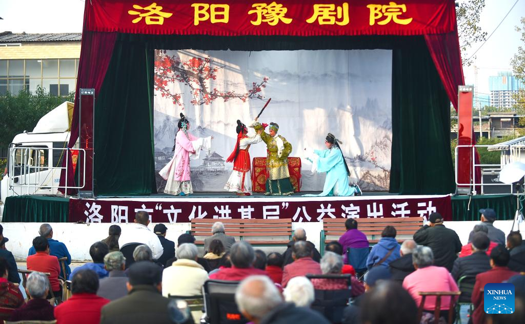 Actors perform Henan Yu Opera for senior citizens at a square in Jianxi District of Luoyang City, central China's Henan Province, Oct. 26, 2025. A series of celebration activities were held across the country to mark China's Chongyang Festival, which will fall on Oct. 29 this year. Also known as Seniors' Day in China nowadays, it highlights the public's care for older people. (Photo by Huang Zhengwei/Xinhua)