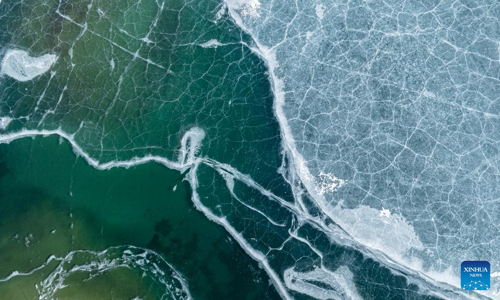 A drone photo taken on Dec. 13, 2025 shows the scenery of a lake in Maizhokunggar County, southwest China's Xizang Autonomous Region. (Xinhua/Tenzin Nyida)