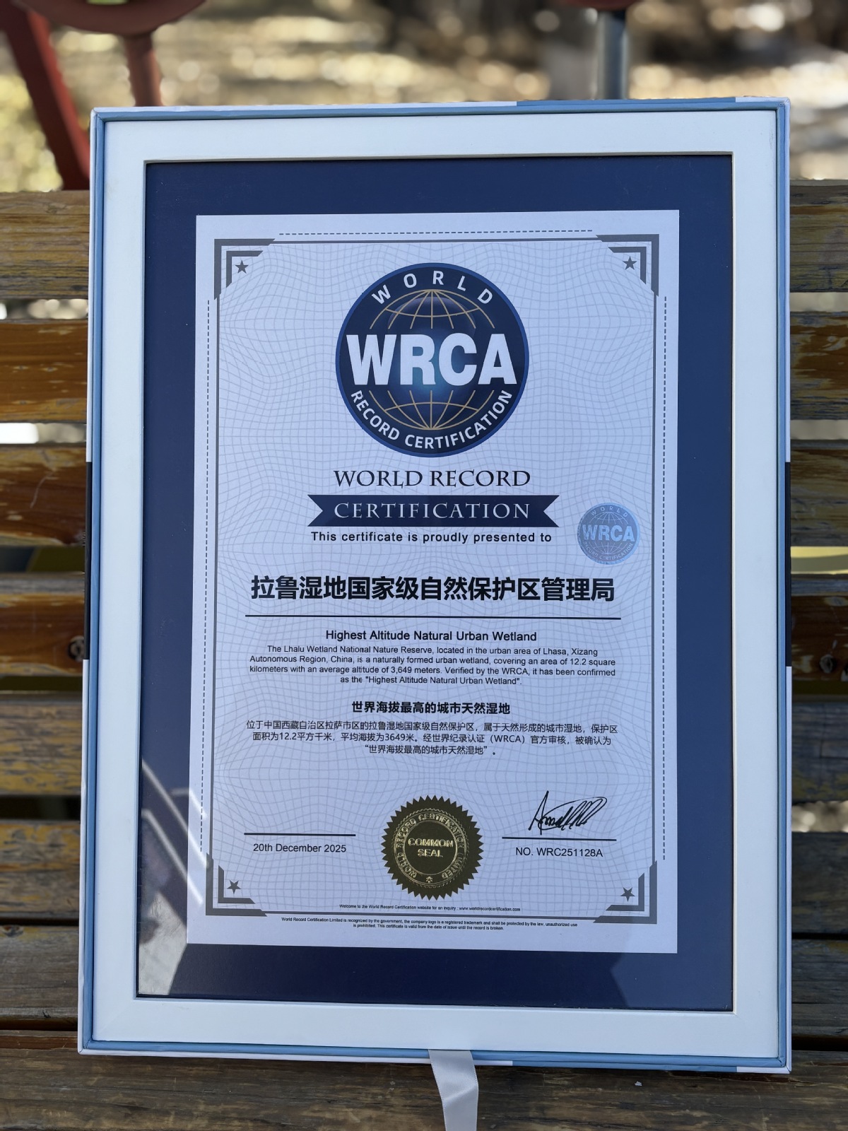 In conjunction with the recognition, a Bird Painting and Photography Exhibition themed, "The Beauty of Feathers in Lhalu Wetland", opened in Lhasa the same day.