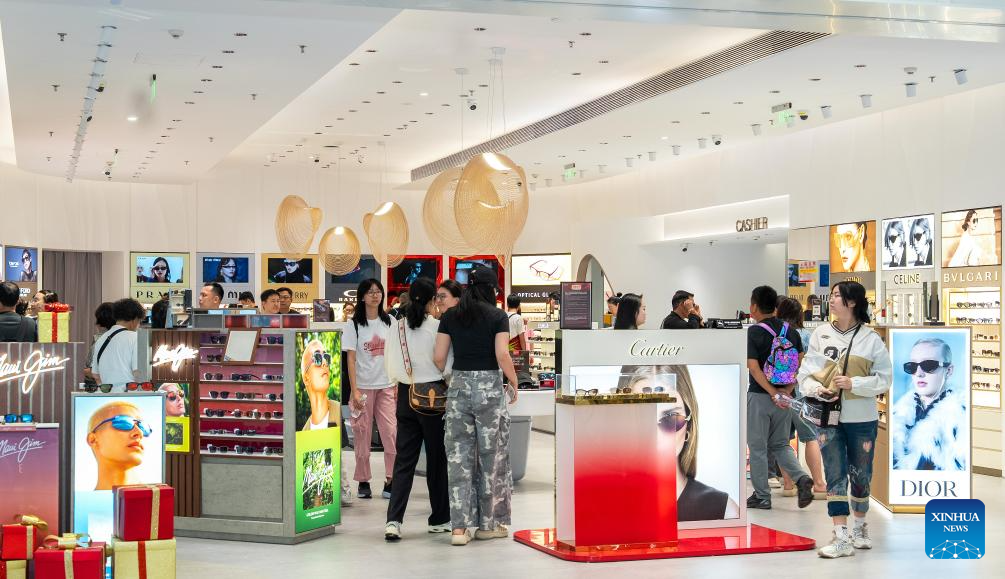 People shop at a duty-free shopping mall in Sanya, south China's Hainan Province, Dec. 18, 2025. The offshore duty-free sales in Hainan Free Trade Port (FTP) totaled 1.1 billion yuan (about 156.9 million U.S. dollars) during the first week of island-wide special customs operations, a year-on-year increase of 54.9 percent, according to Haikou Customs. (Xinhua)