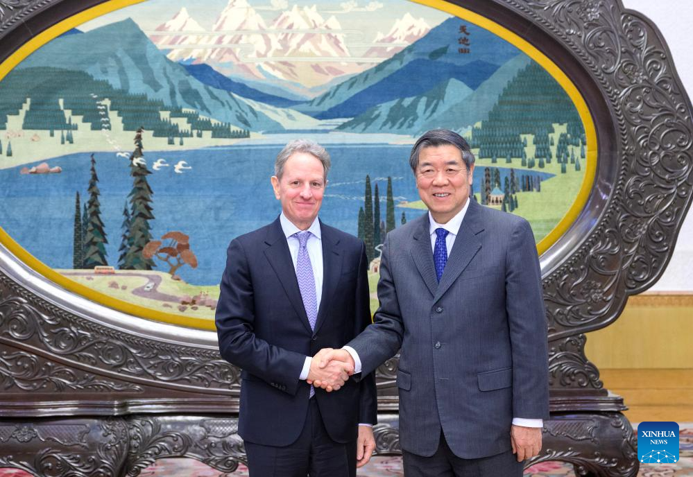 He, also a member of the Political Bureau of the Communist Party of China (CPC) Central Committee, made the remarks when meeting with former U.S. Secretary of Treasury Timothy Geithner, now chairman of Warburg Pincus.