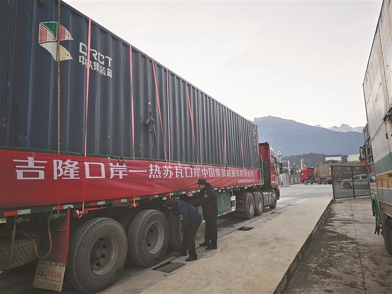 For a long time, cross-border freight transport between China and Nepal primarily relied on Nepalese container trucks, requiring cargo to be transloaded at the border. This not only affected efficiency but also increased the risk of damage. To promote innovation in cross-border logistics, Gyirong Customs proactively collaborated with local governments and enterprises, provided policy guidance throughout the process, and utilized the "Smart Eagle Eye" system to monitor logistics and transportation status in real time, extending the regulatory chain. Additionally, by implementing measures such as "advance declaration," "immediate inspection and release upon arrival," and "paperless customs clearance," customs clearance time at the border has been reduced by over 50%, significantly lowering logistics costs for enterprises.