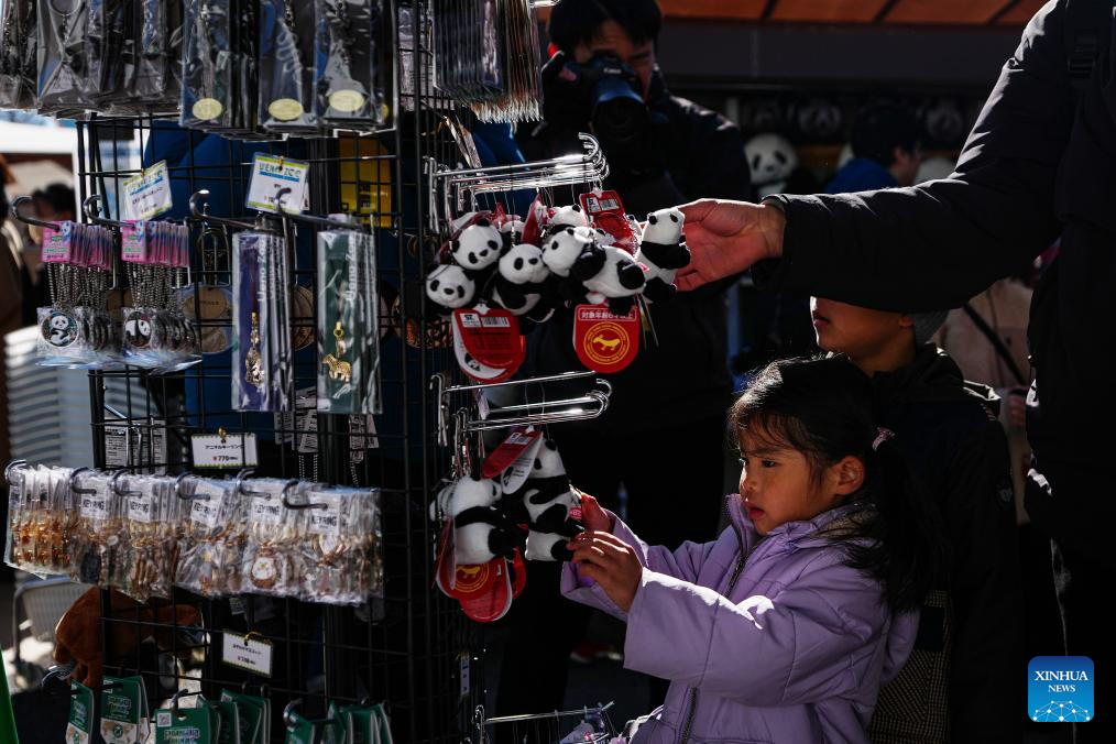 Visitors choose souvenirs themed on giant panda at Ueno Zoo in Tokyo, Japan, Jan. 25, 2026. Giant pandas Xiao Xiao and Lei Lei, currently residing at a zoo in Tokyo, will depart for China on Jan. 27, marking the first time in about half a century that Japan will be without any pandas, local media reported. (Xinhua/Jia Haocheng)