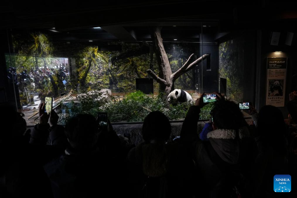 Visitors take photos of giant panda Xiao Xiao at Ueno Zoo in Tokyo, Japan, Jan. 25, 2026. Giant pandas Xiao Xiao and Lei Lei, currently residing at a zoo in Tokyo, will depart for China on Jan. 27, marking the first time in about half a century that Japan will be without any pandas, local media reported. (Xinhua/Jia Haocheng)