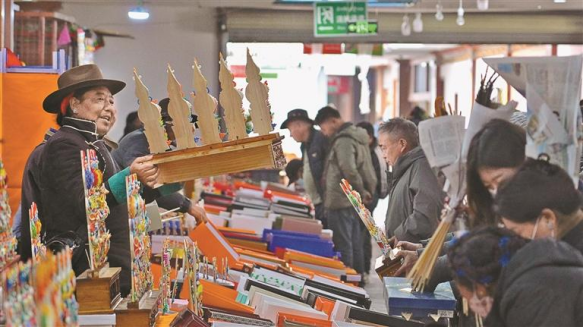 In Lhasa's Barkhor shopping market, the brand "Nyemo Yadong Butter Sculpture" stands out prominently. The butter sculptures, meticulously crafted by the masters, are packaged to standard and transported to the market for sale. Before the New Year, over 70 butter sculpture stalls line the market, most of their operators hailing from Rinbung County, Xigaze. They get to here each year specifically to create and sell their works. As midday approaches, row upon row of butter sculptures are neatly displayed. Traditional shapes like lotuses, auspicious clouds, and carp appear lifelike and exquisitely crafted, drawing many citizens and tourists to stopto purchase.