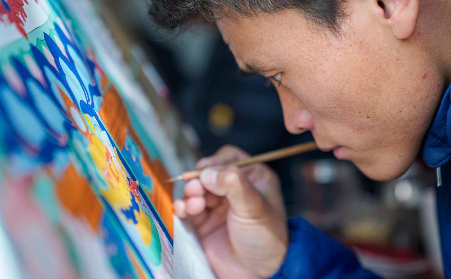 In 1992, Norbu Sidar began taking on students. Ten years later, he led the founding of the Xizang Academy of Thangka. Today, as a master's supervisor at the School of Arts of Xizang University, he guides graduate students in studying the history of thangka and encourages young people to experiment with new forms of expression. To date, over 400 students are, like him, contributing to the development of Tibetan thangka art.