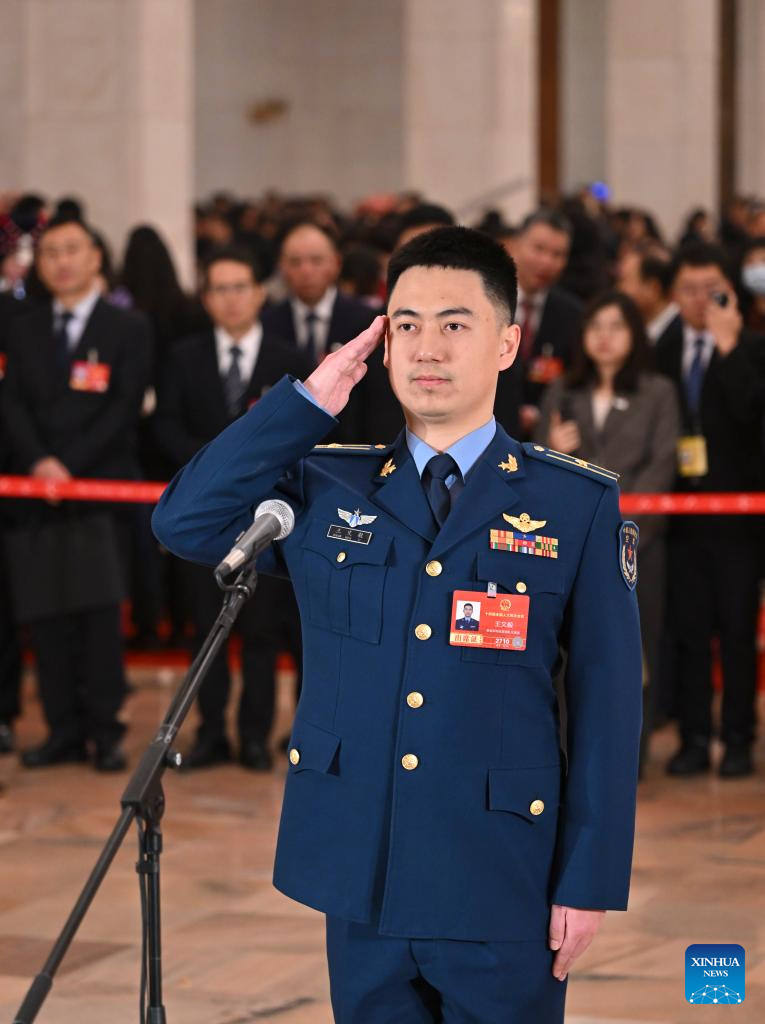 Dong Jin, a deputy to the 14th National People's Congress (NPC), attends a group interview ahead of the opening meeting of the fourth session of the 14th NPC at the Great Hall of the People in Beijing, capital of China, March 5, 2026. (Xinhua/Li Xin)